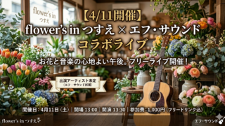 未分類【4/11開催】お花と音楽の心地よい午後。flower’s in つすえ × エフ・サウンド コラボライブ開催! いつも flower’s in つすえ をご利用いただきありがとうございます。春の陽気が心地よい今日この頃、例年開催している「あの」イベントのお知らせです。大分市のライブハウス「エフ・サウンド」様とタッグを組み、当店の中で音楽を楽しむスペシ...2026.03.22未分類