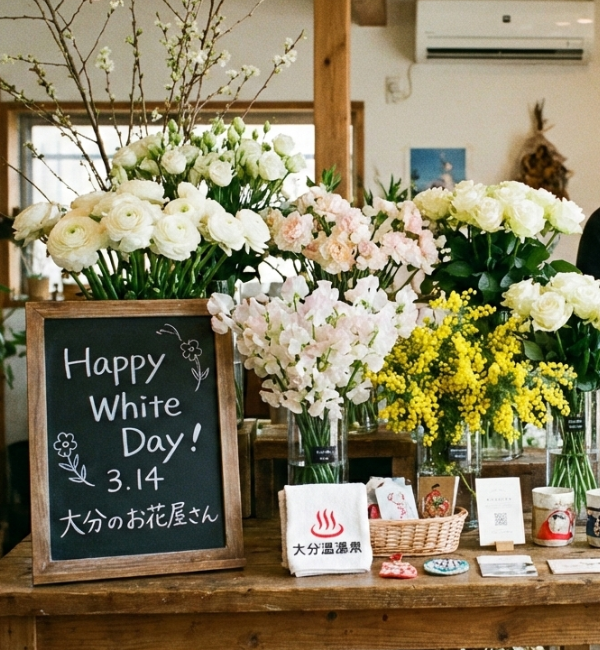 「ホワイトデーだから、春のお花を買ってきたよ」